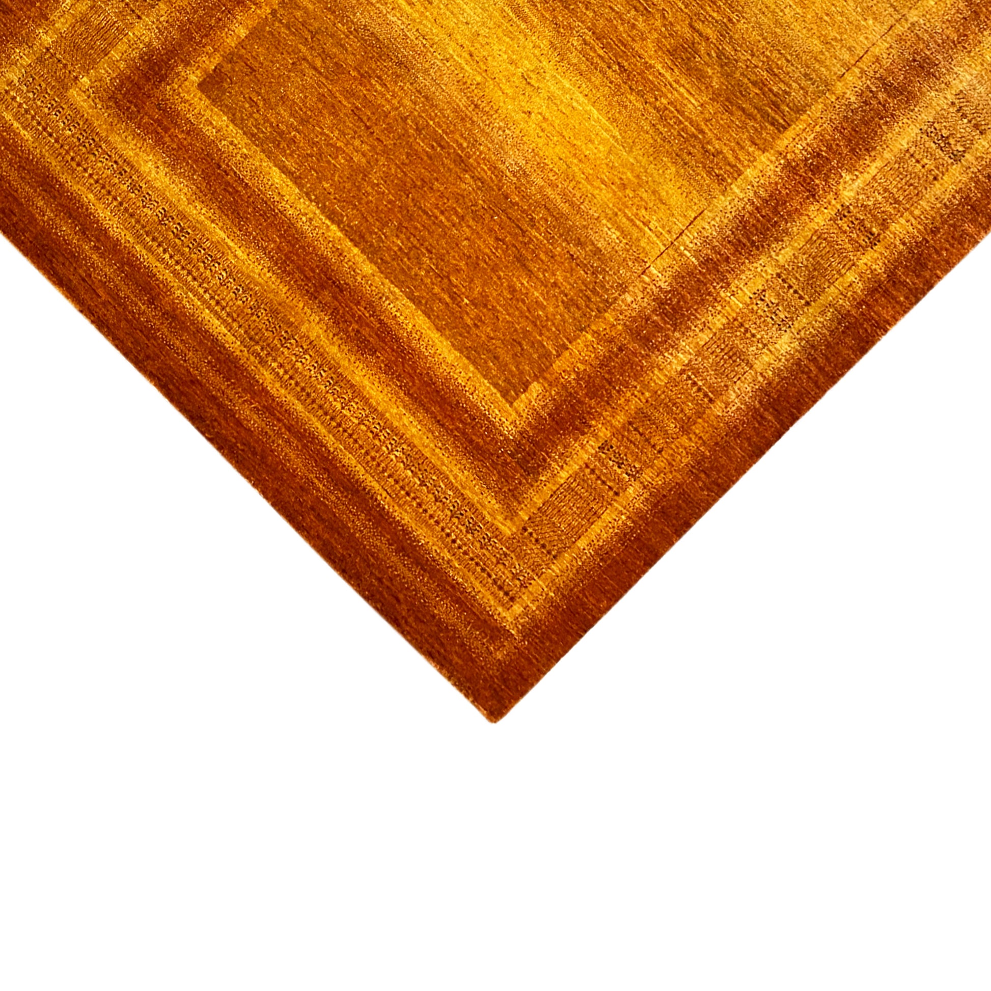 Ein strahlender Gabbeh Luri Teppich in warmen Goldtönen mit harmonischem Farbverlauf und dezenter Doppelbordüre. Handgeknüpft aus natürlicher Wolle und traditionell pflanzengefärbt – dieser Teppich in 215x161 cm verleiht jedem Raum eine gemütliche Ausstrahlung und zeitlose Eleganz.