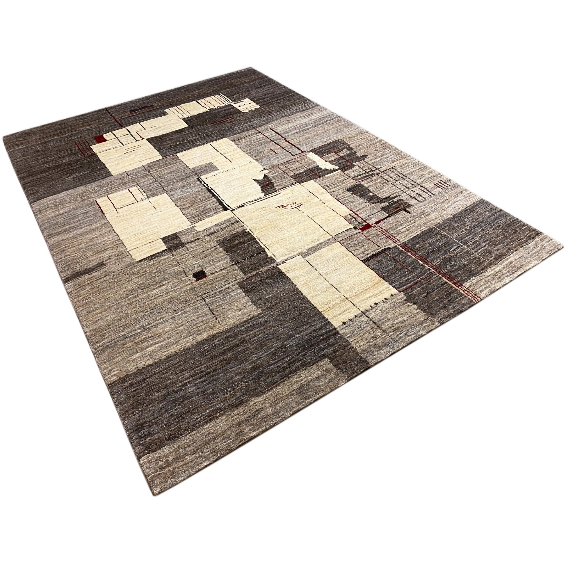 Dieser handgeknüpfte Gabbeh Teppich aus handgesponnener, pflanzengefärbter Wolle zeichnet sich durch seinen modernen Dekorstil und ein abstraktes Muster aus. Mit einer Größe von 302x209cm bietet dieser einzigartige Teppich in Grautönen eine stilvolle und langlebige Ergänzung, die Ihrem Wohnraum eine zeitgenössische Note verleiht.